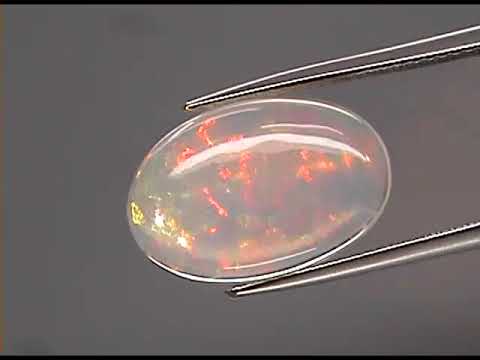 Don't miss this amazing opal! It has jelly clarity with a touch of smoky translucency that really make its colors pop. In hand this piece has much stronger play of color than in the pictures, delivering fiery pinks and reds, electric greens and vibrant oranges and yellows suspended through its body in a rolling display. It features a well blended mix of floral and block patterns that smolder in low light and dazzle in bright light. The play of color is constant. Measuring 17.2mm x 11.5mm x 6mm, this large example has a low dome cabochon cut giving it incredible surface area, and a pearlescent luster that glows over its smooth surface. Sourced from Welo, Ethiopia. Untreated!