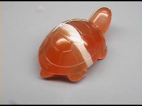 Get ready for maximum cuteness! This adorable little guy has rich orange color that glows through his semi-translucent body, and a glossy liquid luster that makes him look like he just walked out of the water. His big eyes look at you expectantly, and he has great detail from his shell to his little flippers and tail. This enchanting piece was hand carved and measures 33mm x 18.6mm x 13mm. Sourced from Mexico. Untreated!
