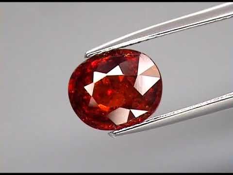 This garnet displays a rich red hue and an amber undertone with glittering pops of fiery red flashing under its glistening superior luster. It measures a sizeable 9.8mm x 8mm x 5mm, and with its rich color and glittering flashing, it will stand out in any setting. Sourced from Africa. Untreated!