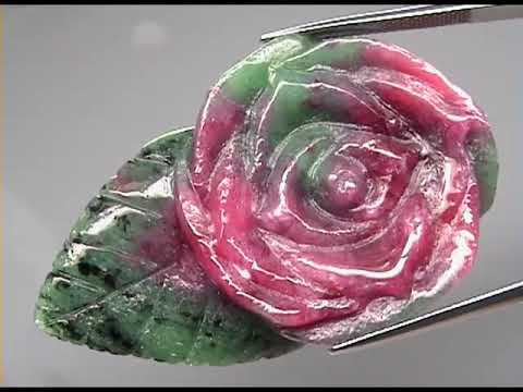 This is a gorgeous gem carving with incredible size! It's huge! Almost 132 carat huge! The exotic Winza ruby in this piece blends beautifully with natural zoisite, and was cut to maximize the placement of these colors in its design. The lush violet red pedals give it an almost velvet quality shadowed by its dark green and black zoisite across its pedals, brought together by its glistening hand polished luster. All of the elements of this carving are all natural with no treatments, and it measures an impressive 47.2mm x 28.4mm x 18.5mm. Sourced from Winza, Tanzania.