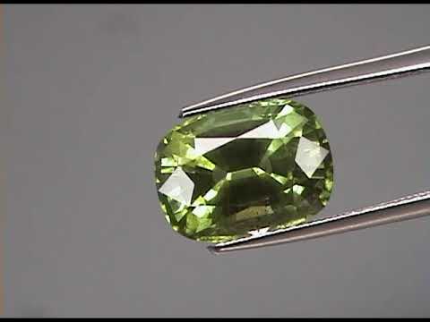 Clear some space in your gem and jewelry collection, because you are going to want to add this piece! This peridot measures an impressive 11.4mm x 8.5mm x 6.8mm, and its natural! No treatments! Just pure peridot! It has a classic cushion with crisp faceting that results in nonstop flashing, and every cut is covered with a glistening superior luster. Its color is both rich and vibrant with a spring green hue showing preferred medium saturation and bright tone. This glittering gemstone was sourced from Myanmar (formerly Burma). Don't miss this substantial collectors gem!