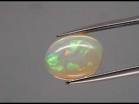 Unlike most opals that need to be turned to certain angles to see their play of color, this opal exhibits constant play of color. It smolders in fiery reds and greens with touches of gold in a layered floral pattern. This piece has a smooth cabochon surface with a low profile cut, and measures 11mm x 8.2mm x 4.2mm. Sourced from Ethiopia. Untreated!