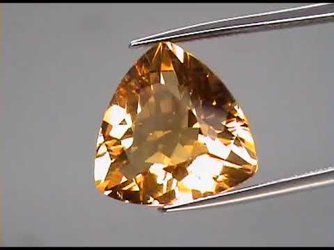 This is the citrine you need for your collection! It has a bold burnished gold hue with open color and just a touch of orange in its undertone that adds an incredible pop to its color. This is enhanced by pristine VS clarity and a beautifully polished superior luster that shimmers across its body. And to top it off, you have a gorgeous trillion cut with crisp facets filling it with non-stop flashing, creating a hand sized masterpiece framed in light. Measuring 14.3mm x 14.3mm x 8.3mm this citrine has amazing size, and its high quality display will stand out in any setting or collection. Sourced from Brazil. UNTREATED!!!