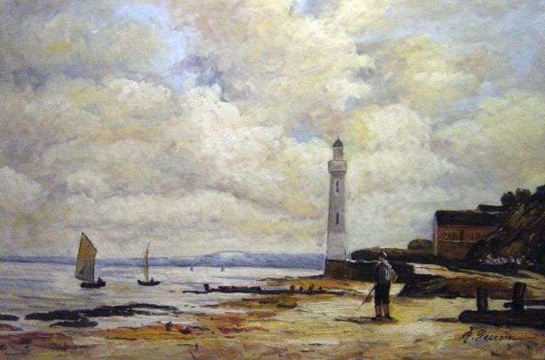 Highly Collectible Eugene Boudin One of a kind oil on Canvas signed by the artist. Originally painted by Eugene Boudin, The Honfleur Lighthouse. This art has been reproduced by master artist from Original painting and is unframed