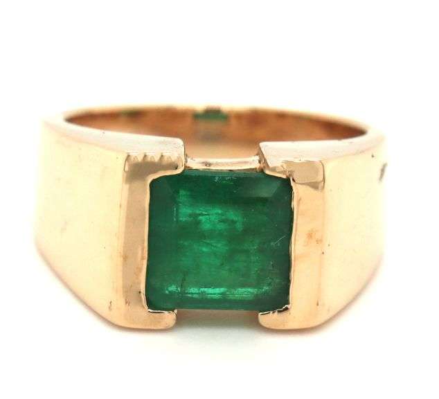 14kt Yellow gold approximate 1.20ctw emerald half bezel ring. The total weight of the ring is 9.10 grams. Ring size 5.5".
