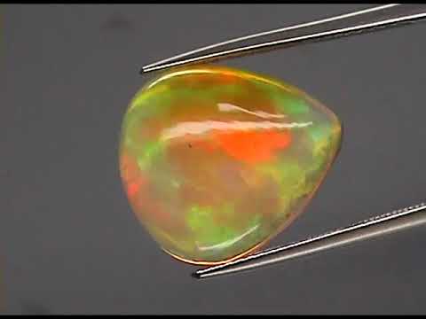 Holy flashing Batman! This opal is non-stop! Whether bright light, low light, or almost no light (no joke), this opal doesn't care. It was put here to give you a non-stop color display, and nothing is going to stop its shine. Just imagine that the video is a song with the sound turned down, because the color of this opal goes to eleven. The full cover play of color radiates from the gem, and forget about arms length, you can easily see this piece from across the room. It has semi-black jelly opal body, and it explodes in a rolling floral pattern accented by block floral patterns and a touch of chaff pattern, flashing in electric shades of green, red. orange and gold. It has substantial size, measuring 16.4mm x 14.5mm x 6.9mm, and its whole display is captured under a glistening liquid luster. Sourced from Welo, Ethiopia. Untreated!