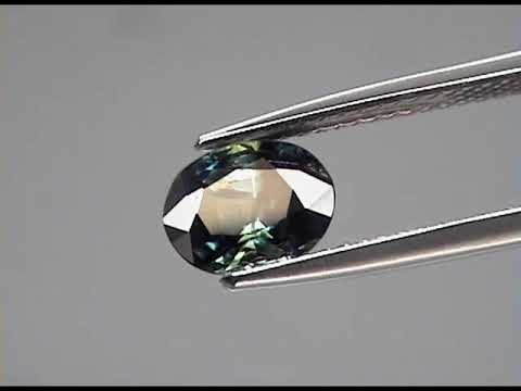 The color palette of this gem is amazing. It presents a deep green that is as almost black on its edges, but shows a fully transparent stripe of blue green in its middle. But, when you turn it over, you can see that the rich greenish black hue is only across the top, as the bottom is also fully translucent. It's pretty cool. It was cut from pure Tanzanian sapphire, and was heated only, this fancy grade color isn't from any dyes or chemical enhancements making it a very interesting collectors sapphire. Weighing 1.30 carat, and measuring 7.7mm x 6mm x 3.5mm, it is perfect for a dramatic setting, or to add a deeper dimension to an already existing one. And with a Mohs hardness rating of 9 out of 10, this very unique sapphire is as durable as it is beautiful, and an excellent choice for everyday wear.