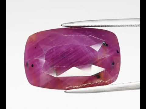 Start hitting the gym now, because if you intend to wear this ruby, you are going to need a little extra muscle. It weighs almost 38 carats! That's huge! And its all natural! But its not just the weight of this piece that makes it special. The color of this ruby is one-of-a-kind! Watch the video and you'll see the amazing red hue with its well blended violet undertone and superior luster. But when you look around the edges, you can see swirling touches of orange that continue into a stronger showing on its underside adding a bit of colorful drama to its display. And then you have the natural dalmatian like inclusions sitting right under its smooth cut facets, with a beautifully opaque body ensuring fantastic color stability. It measures a whopping 22.4mm x 14.6mm x 11mm, and has a Mohs hardness rating of 9 out of 10 making it perfect for setting. This exotic example was sourced from Guinea. Untreated!