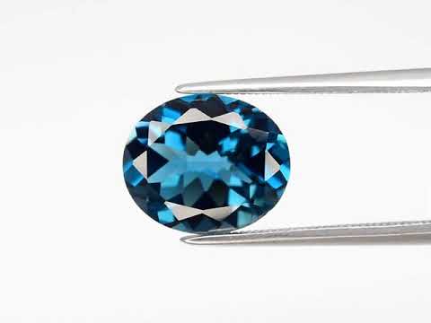 This piece is gorgeous! It features a prime London blue hue that is at once rich and vibrant with deep cobalt blue flashing through pristine VS clarity. It is well cut with fantastic symmetry, and every facet is covered with its superior luster. Measuring 12mm x 10mm x 5.5mm, it is perfect for setting, and with a Mohs hardness rating of 8 out of 10, it is as durable as it is beautiful. Sourced from Brazil.
