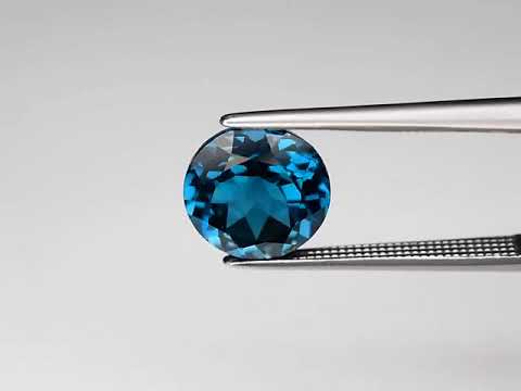 This piece is gorgeous! It features a prime London blue hue that is at once rich and vibrant with deep cobalt blue flashing through fantastic VS clarity. It is well cut with fantastic symmetry, and every facet is covered with its superior luster. Measuring 9mm x 5.7mm, it is perfect for setting, and with a Mohs hardness rating of 8 out of 10, it is as durable as it is beautiful. Sourced from Brazil.