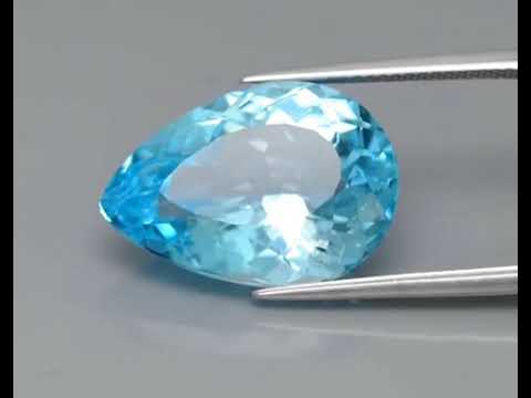 When this package arrives, you will need to put on your sunglasses before you open it. There, you have been warned. This topaz has so much sparkle, it looks like its was filled with tiny diamonds! And what type of lighting is best for this effect? It doesn't matter. Bright light, low light, even close to no light, this topaz produces flashing that starts brilliant at the top, and then picks up more sparkle on the way down giving it a captivating waterfall effect. But that's just the cut! The color, now that is something else entirely. This topaz has a gradient blue palette that moves from electric blue at the tip of its pear shape to vibrant sky blue to Swiss blue at the bottom. It is crazy! And then you have the premium polished luster to bring everything together while adding a little sparkle of its own. This gem is just non-stop. It measures an impressive 19mm x 13.3mm x 8.8mm with premium VVS clarity, and has a Mohs hardness rating of 8 out of 10, so you know its perfect for daily wear. Add some spectacular sparkle to your gem and jewelry collection today! Sourced from Brazil.