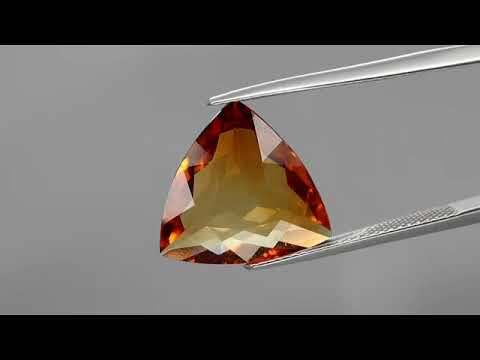 Don't you dare miss this citrine! The pendant cut of this piece gives you massive surface area for its carat weight, so your 6.60 carats measures a whopping 15.3mm x 15.3mm x 5.3mm! But that's only the beginning, because even though this piece has a low profile cut, its Madeira hue is still both rich and vibrant flowing through it like a blend of whiskey and cloved oranges. The color builds as it moves from the center out, turning deeper and richer, while giving off vivid orange tones with touches of red in framed flashing. The effect resembles a crackling campfire, if that campfire was trillion shaped. And only lit around the edges. Which would be really cool, but would probably get you removed from campfire lighting duty. But now you don't have to worry about that, because the only thing you will get with this fiery gemstone is compliments. It is very well cut with crisp angles and beautiful symmetry, and it practically glows through its pristine VS clarity. Sourced from Bolivia. Untreated!