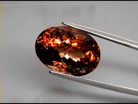 This center stone has amazing VS clarity with a well blended color palette that flows through rich, warm whiskey interlaced with brilliant orange ambers. It echos these colors in vibrant pops of confetti flashing, and every facet glistens from its superior luster. Measuring 18.8mm x 13.2mm x 11.8mm with a Mohs hardness rating of 8 out of 10, it is perfect for a commanding setting. Sourced from Brazil.