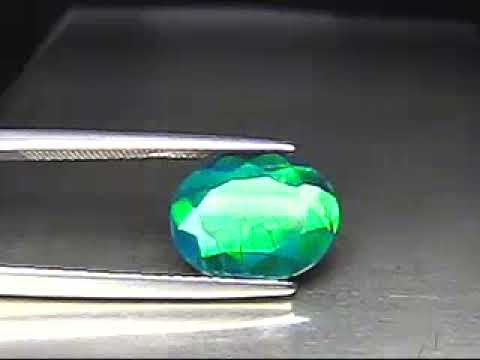 This gorgeous opal exhibits a silky black hue that glistens under its liquid luster, but the real star of the show is its amazing play of color. This piece presents rolling full panel flashing that shows bold in electric greens at certain angles with shy tourquoise and royal blue at others. You can observe a touch of honeycomb that gives its secondary colors a fingerprint effect. Its mesmerizing! Measuring 12mm x 9.5mm x 4.2mm, it has amazing size, and a translucent body when held to the light. Sourced from Welo, Ethiopia. Heated.