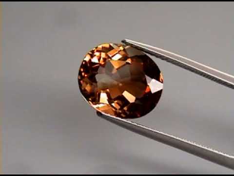 There are two side to this bi-color gem. One contains bright ambers and delicate champagnes with a peach undertone. The other has deep whisky color that smolders with orange flashing. Both halves are coated in a superior luster and feature crisp eye clarity. It has great size weighing 6.42 carats and measuring 12.2mm x 10.1mm x 6.4mm. Sourced from Brazil.