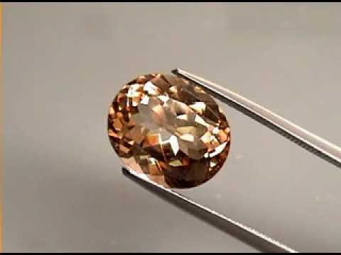 Not every gem explodes with flashing like this one. Tight faceting and a classic oval cut sets the peach and champagne tone ablaze in an impressive display. This piece measures 12.1mm x 10.1mm x 7mm with a Mohs hardness rating of 8 out of 10 making it perfect for setting. Sourced from Brazil.
