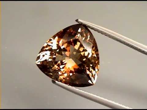 The trillion cut of this topaz creates a brilliant high fire flash pattern that glitters and pops in sharp angular flashing. This display is accented with twinkling pops from its superior luster as it shimmers across every facet. The rich imperial hue has swirling saturation with open color creating a vivid color palette that is tempered by refractive shadows, as seen in the gems photo. The whole effect is simply gorgeous. It measures 13.3mm x 13.3mm x 7.7mm, and was sourced from Brazil.