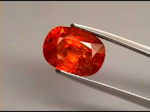 This eye catching gem was cut from pure spessartite garnet, and displays a Mandarin red orange hue that is filled with glittering flashing. It has incredible size, measuring 11.2mm x 8mm x 6.8mm, and is finished with a stunning superior luster. Sourced from Mozambique.