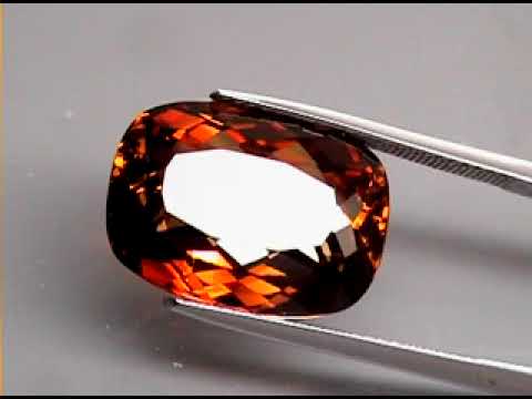 This is a remarkable example of Brazilian topaz. It presents a top whiskey red hue infused with well blended touches of amber and strong saturation with open color. It has a classic cushion cut with a mix of stunning confetti and liquid flashing, and its superior luster glitters off of every facet. This large gem measures 17.8mm x 13mm x 9mm, and has a Mohs hardness rating of 8 out of 10.
