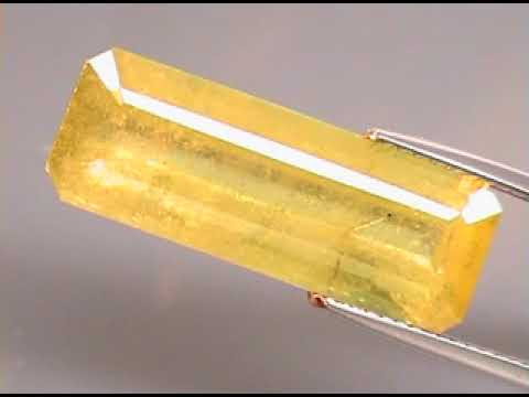 This collectors sphene is amazing! The size of this piece is incredible measuring 22.6mm x 8.1mm x 4.7mm, and it displays a bright yellow green hue that shifts color dominance in different lighting. The linear flashing of this piece runs up and down its sides in bright green with touches of red and dark green, and a flawless superior luster glistens across every well cut facet. This is an unheated example sourced from Russia.