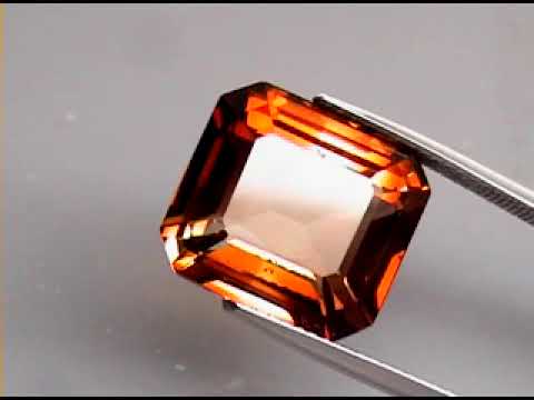 This is a gorgeously colored example of Brazilian topaz. It has a deep whiskey red hue mixed with rich amber and delicate champagne in swirling saturation through VS clarity. The elegant emerald cut creates brilliant linear flashing, and its fire is amplified by its superior luster. This impressive topaz measures 14.2mm x 13.3mm x 8.7mm, and has a Mohs hardness rating of 8 out of 10.