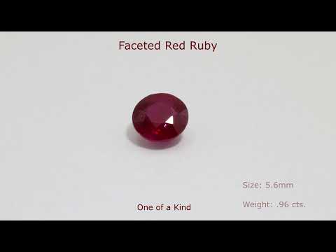 Radiant natural ruby - the rough is from Burma. This lovely gem measures 5.6mm round and weighs 0.96 ct. Fine cutting and beautiful, rich red color. Simply stunning!