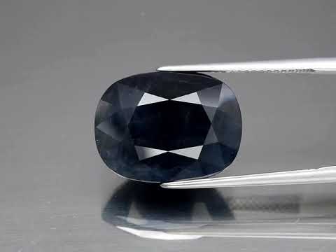 You don’t want to miss this piece! It has a silky black resting color that is so dark it glistens, but when you hold it to the light, you can see a gorgeous deep blue hue with silver striations. It has a fantastic cut and a superior luster that that shimmers off of each facet. Measuring 17mm x 13mm x 8.8mm, this sapphire has fantastic size, and a Mohs hardness rating of 9 out of 10, making it a great piece for setting. Sourced from Mozambique. Heated only.