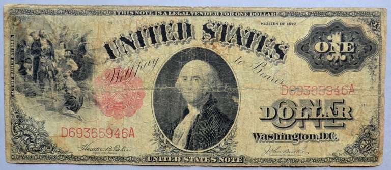 $1 Series of 1917 Landing Of Columbus Note Fr36 Lotsa honest wear Mainly on the horizontal crease. Some holes from related use in the crease. Some nicks around the edge oherwise decent. Popular type note