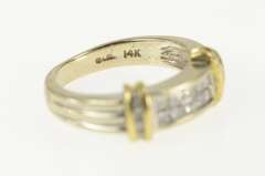 You are bidding on a 14K Yellow Gold 0.46 Ctw Princess Diamond Squared Channel Ring. This item has a composition of 14k Gold Marked. This is beautifully accented with 0.40 Ctw=10x Princess Cut Diamond 0.06 Ctw=6x Round Diamond. The item's condition is Estate:Good. This item has a weight of 4.9 grams. We would consider this piece to be Vintage. This ring is size 4.75.