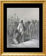 Highly collectible rare antique black and white plate circa 1880 by Gustav Dore. This 140+ year old plate is from The Bible Gallery, published by Cressell & Company, New York. Printed in New York by W.M. T. Hunter. This artwork comes framed with a solid wood gallery frame, UV glass protection and black museum board.