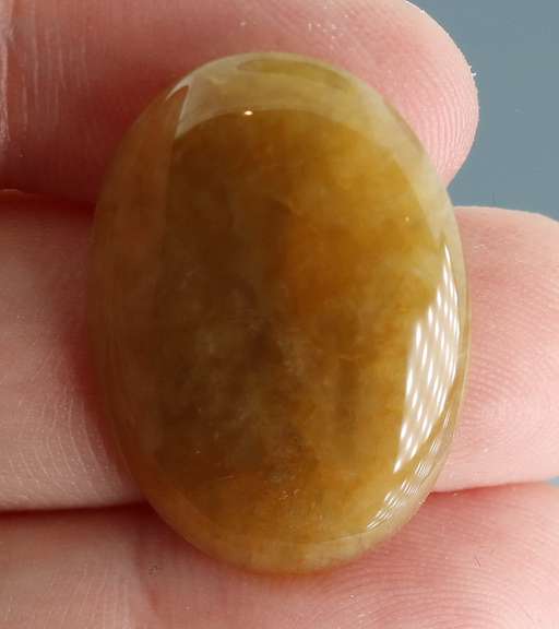 Don't miss this stunning jade cabochon. This piece exhibits an earthy burnt sienna hue with a glossy luster, and measures an impressive 28.5mm x 20mm x 4mm. This piece is semi-opaque and glows when held to light.