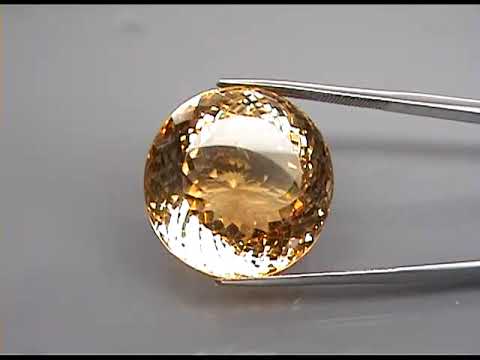 The incredible round cut of this gemstone creates a dazzling display accented by its strong underlying flashing that echos its lively golden yellow hue. It is well cut, measuring a staggering 21.2mm x 16.2mm, and is unheated. Sourced from Brazil.