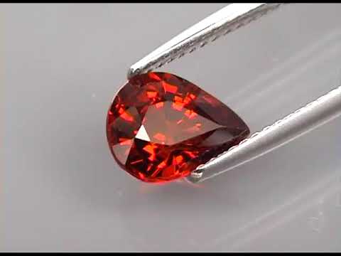 This garnet pear displays a ravishing red hue under a glistening superior luster. It measures 8.7mm x 6.8mm x 4.9mm, and with its rich color and glittering pops of scarlet flashing, it will stand out in any setting. This fiery gem was sourced from Mozambique, and is untreated.