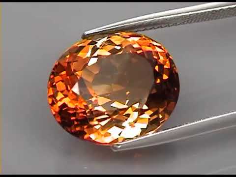 This is a remarkable example of Brazilian topaz. It presents a deep whiskey hue infused with rich amber through pristine VS clarity. Its oval cut creates a mix of stunning glittering and wide stroke flashing that rolls through its entire body, and its fire is amplified by its glistening superior luster. This sizeable gem measures 14.6mm x 12.4mm x 9.0mm, and has a Mohs hardness rating of 8 out of 10 making it perfect for setting.