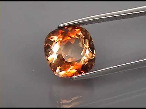 This is one expressive gemstone! It has a vivid palette tempered by a stunning superior luster that casts rolling shadows through its pristine eye clean clarity. Its color is vivid, exhibiting a solid peach hue with a touch of whiskey in its undertone, and it is filled with non stop flashing that echos these colors. This amazing topaz example measures 10.5mm x 10.5mm x 7.7mm, and was sourced from Brazil.