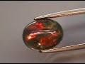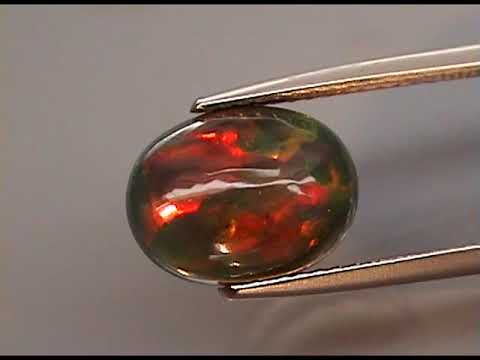 A full spectrum of colors play in reds, greens, and yellows in a fantastic block pattern. This excellent Ethiopian Opal glistens under its liquid luster and it measures 11mm x 8.5mm x 4.8mm. Smoked.