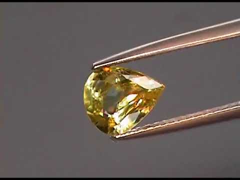 This gems color has a dramatic shift from lime green to rich yellow in certain lighting under a glistening diamond grade luster.If features a classic pear shape and has great size with a measurment of 7.5mm x 6.3mm x 3.3mm, and is untreated. Sourced from Russia.