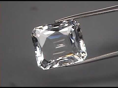 Look at this amazing piece. Cut from pure white quartz, it exhibits a flawless diamond white hue that shines through its eye clarity. It was precision cut with fantastic symmetry resulting in crisp and vibrant flashing. Measuring 16.8mm x 14.4mm x 9.8mm, it has incredible size and a Mohs hardness rating of 7 out of 10. Source from Brazil. Untreated.