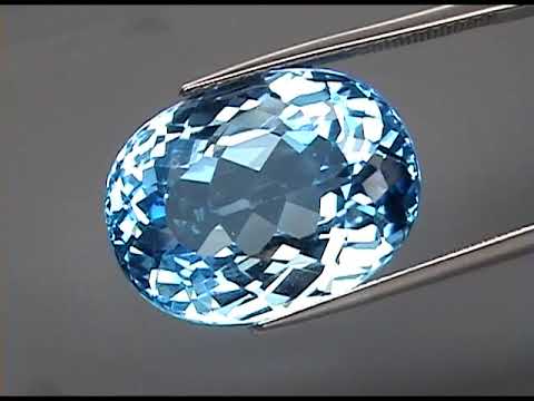 This Swiss blue topaz is well cut, resulting in brilliant high fire flashing that erupts throughout the piece and is accented by its glistening luster. It measures a whopping 19.5mm x 14.7mm x 10.8mm and has a Mohs hardness rating of 8 out of 10. Sourced from Brazil.