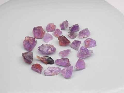 These are 22 fantastic uncut gems. They have bright purple hues with very strong color saturation and ample size, measuring from 17x6mm to 8.5x8mm. Even uncut, they display gemmy lusters.