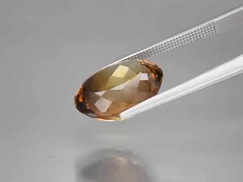 The hue of this topaz shifts through ambers and rich oranges with touches of gold, complimented by high fire flashing and VS clarity. It has a premium cut with a shimmering superior luster that covers every facet. This connoisseur grade piece measures 14mm x 10.4mm x 7.8mm, and was sourced from Brazil.