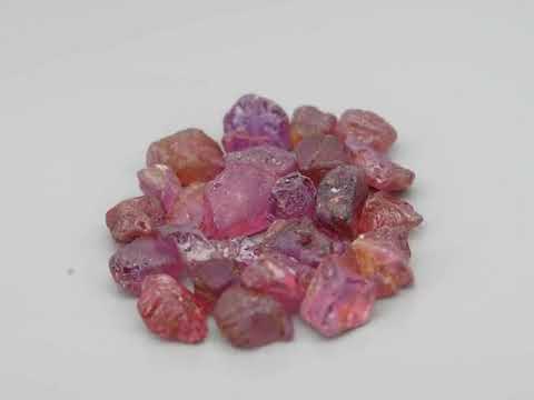 Unlock the beauty of natural sapphires with this unique collection of 25 uncut, untreated translucent sapphires weighing a total of 19.20 carats, ethically sourced from Madagascar. Unlike lab-treated stones, these sapphires maintain their natural state, exuding an authentic, rich red violet and pink hues prized by gem collectors and jewelry makers alike. This set has a wide assortment of measurements, from 8.4x5.5mm to 3.7x3.5mm. Madagascar is renowned for producing rubies of vibrant color and exceptional quality, yet untreated sapphires of this size and number are increasingly rare, making this collection a remarkable find. Add this set to your collection today!