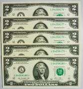 Five 2013 Two Dollar Star Replacement Notes. From The Federal Reserve Bank Of San Francisco. Superb Crisp Examples. Well Centered With Great Margins, Bold Ink, Exceptional Paper Quality, And Consecutive Serial Numbers!!