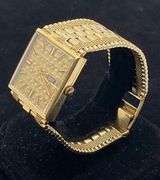 The gold band is designed to be both sleek and flexible. Crafted to form-fit comfortably around the wrist, it combines elegance with practicality. The flexible nature of the band ensures it moves effortlessly with the wearer, while its sleek design maintains a refined look that enhances the watch's overall sophistication.