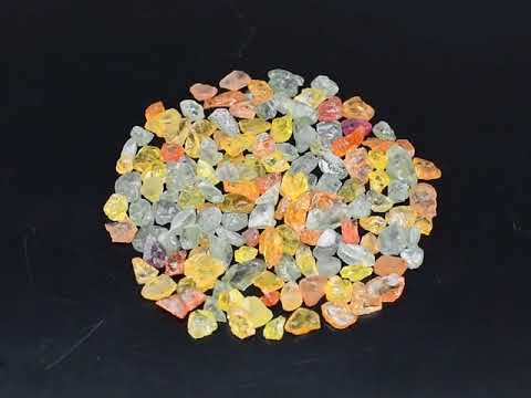 The beautiful color saturation of this raw sapphire set swirls in bright greens, yellows and pinks. There are multiple sizes from 3.5x2.5mm to 7.2x3mm in this parcel making it very versatile. Sourced from Songea, Tanzania.