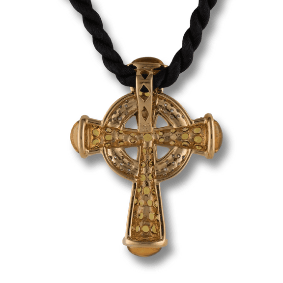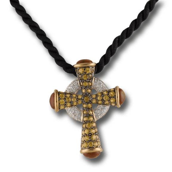 Gorgeous Citrine and Diamond Cross Pendant on Black Cord