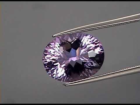 This stylish amethyst measures 14.2mm x 11.1mm x 8mm, making it perfect for setting, and what a setting it would make. The cut of this piece is comprised of expertly placed facets that have concave surfaces, creating a flash pattern that runs through the gemstone in an outward motion creating the illusion of movement while filling it with brilliant shocks of lavender light. The hue is bright and exciting, sitting between lavender and grape with a shift to lush violet in different lighting as seen between the photo and video. This exotic amethyst was sourced from Bolivia, and is untreated.