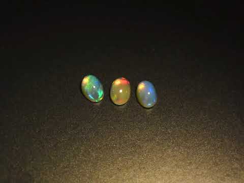 This amazing set of opals displays mixed play of color with light showings in both block and floral patterns. The colors of this set shines in both high and low lighting with pattern dominance changing depending on the light source while glowing in reds, golds, green, oranges, pinks and blues! The lusters of these opals glides across their smooth cabochon cuts glistening with a liquid presence, and they measure approximately 6x4mm each. Sourced from Yita Ridge, Ethiopia.