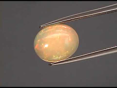 Depending on the light source, this gorgeous opal exhibits floating pinfire or fairy fire patterned flashing in vibrant reds, greens, and oranges. Its frosty off white body enhanced its play of color, while its pearlescent luster glistens across its smooth surface. Measuring 10mm x 8.3mm x 4.6mm, this slim opal is ready to set and impress. Sourced from Ethiopia. Untreated!
