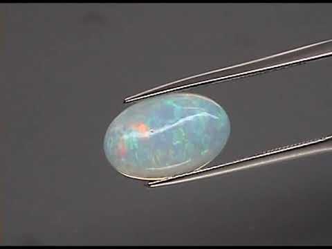 This is an amazing collectors opal! It has a beautiful pearlescent body color and luster with a dusting of red, orange, green, and yellow play of color that moves between a twinkling star pattern and full on floral flashing depending on the lighting. Since opals have less density than other gems you get an impressive size to weight ratio, and when you add the low domed cabochon cut of this piece you end up with substantial size that punches well out of its weight class, measuring 13.7mm x 8.9mm x 4.5mm. Sourced from Coober Pedy, Australia. Untreated!!!